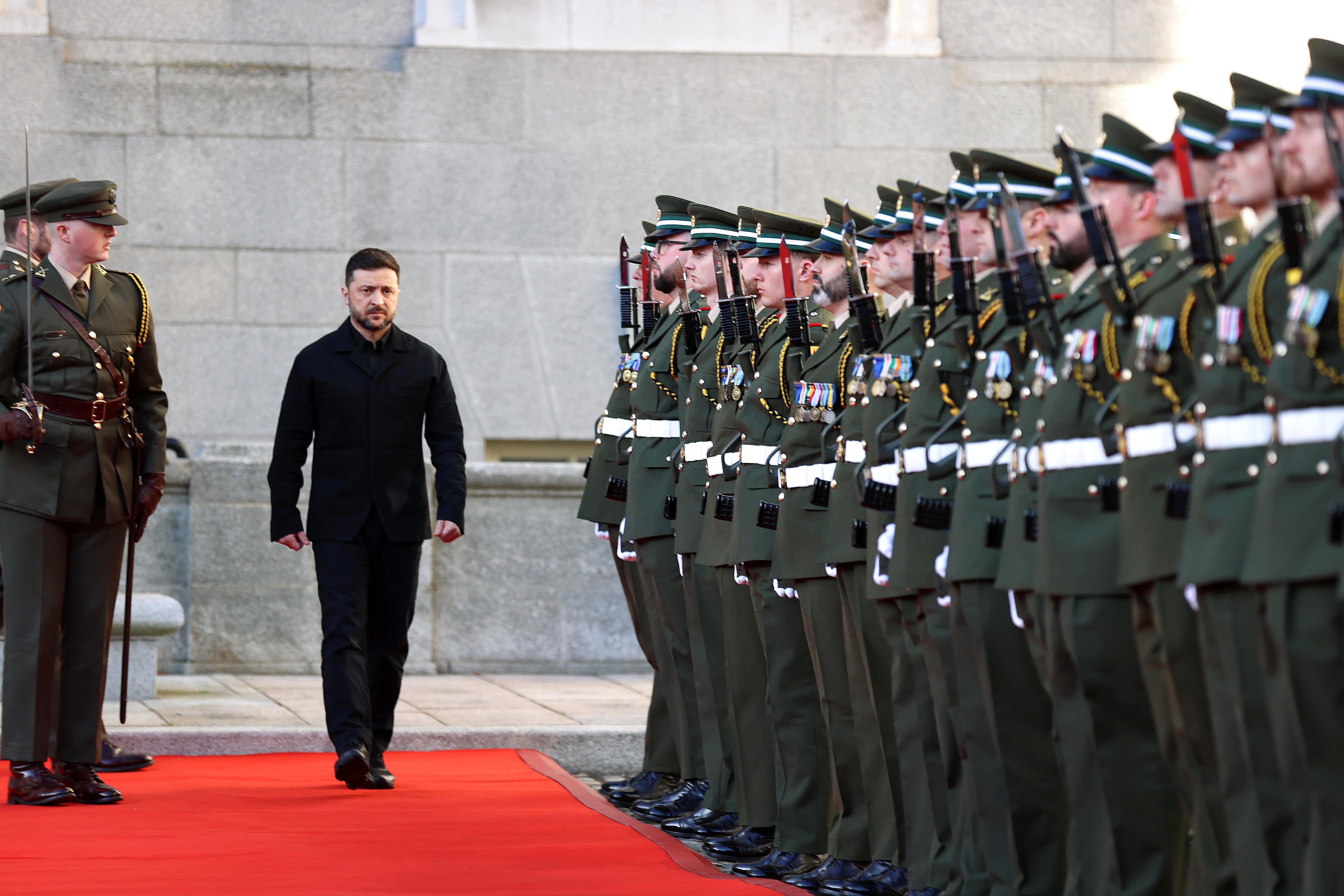 Mr Zelensky arrived at Government Buildings in a convoy of heavily-armoured vehicles, where a guard of honour was held.